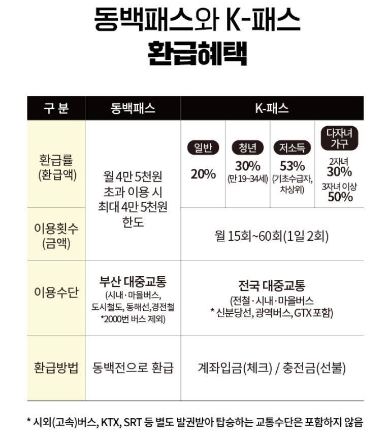 - ※ 만 13~18세 청소년 동백패스는 월 2만 5천원 초과 사용시 최대 2만 5천원 환급