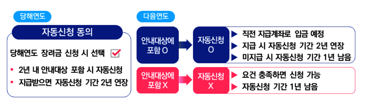 5. 자동신청 제도: 신청안내 대상자가 장려금 신청기간에 자동신청에 사전 동의하면 향후 2년간 안내대상에 선정될 경우 장려금이 자동으로 신청